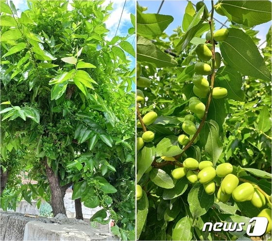 이 대추나무는 올해 기이한 현상이 있는데, 몇 년 전 고향의 봄에 아버지가 심은 대추나무는 아무 걱정 없이 해마다 열매를 맺는다. 이때 꽃은 시들고 대추 알이 있어야 하는데 봄부터 원래 잎보다 훨씬 작은 잎들이 자라서 너무 예뻐 보여서 그냥 놔둡니다.