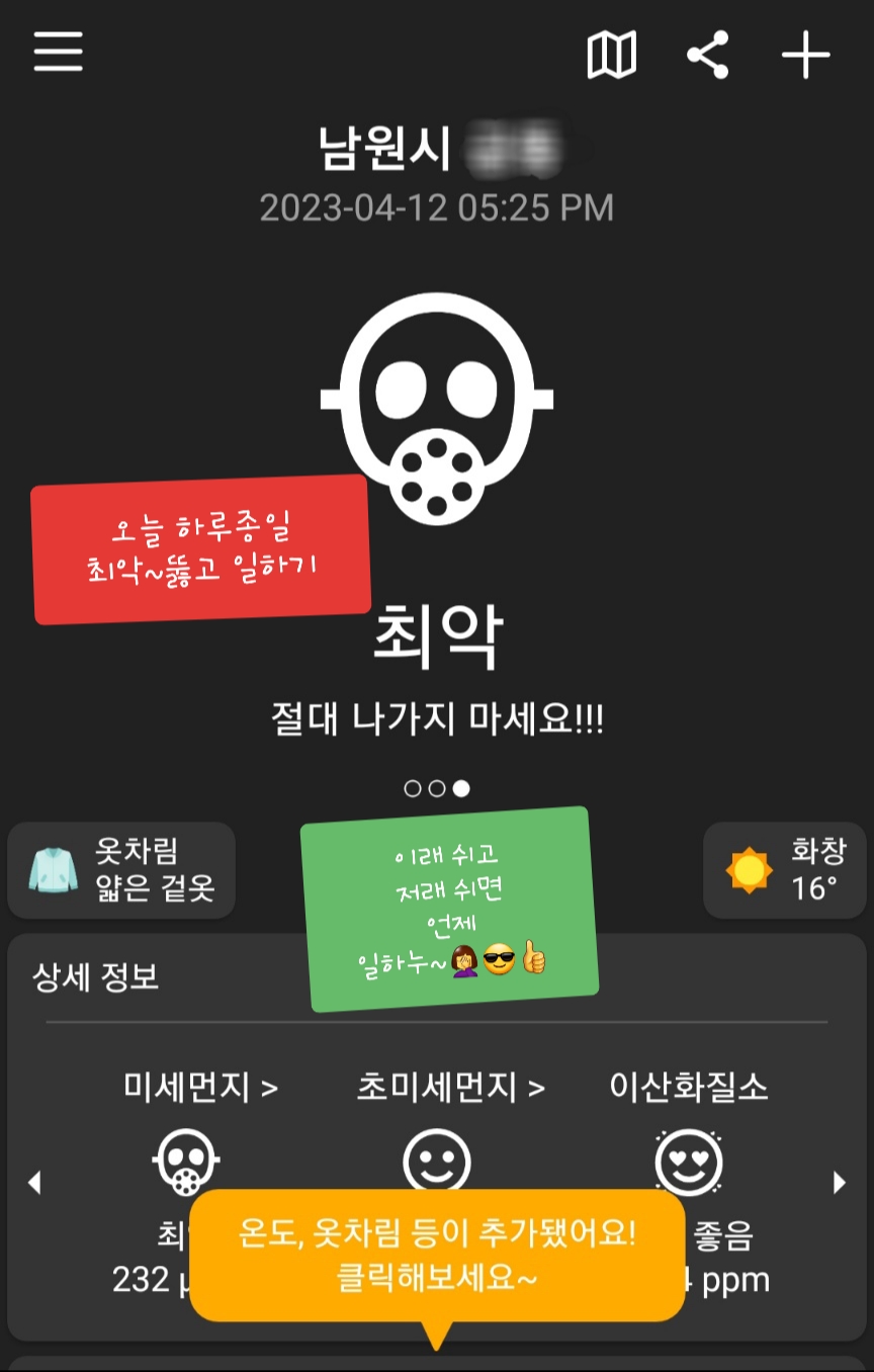 논밭 7일째, 최악의 미세먼지를 피해 떠나세요.