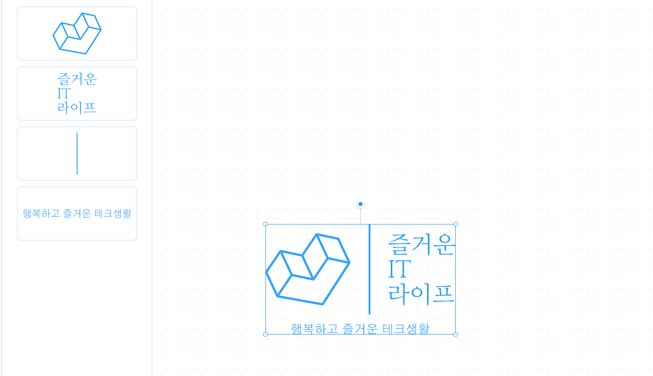 그러면 방금 만든 로고 디자인이 표시됩니다. 로고 디자인에서 여기를 크게 만들어 봅시다. 마우스로 로그를 드래그하여 모든 항목을 선택합니다.