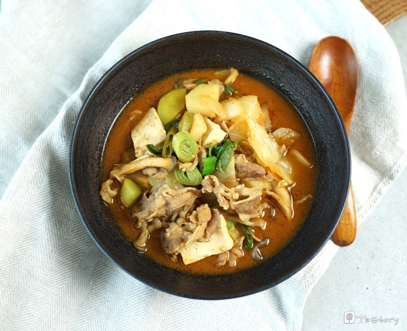 된장 소스에 삼겹살을 곁들인 조림은 더욱 짜다! ! 아이들은 소고기 삼겹살에 두부를 얹어서 맛있다고 했고, 범인은 밥을 두 번 추가하게 했습니다! !