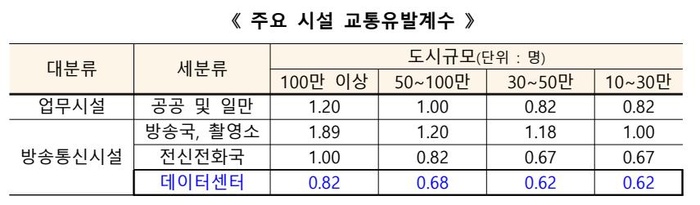 시설의 교통 유도 계수 (제 3-3 조) 분류 범주 범주 범주 범주 크기 (단위 : 픽) 1 백만 ~ 500,000 ~ 1 백만에서 1 백만에서 1 백만 ~ 300,000 ~ 500,000 ~ 300,000, 1 인근 생활 시설 식품 1 축적, 의류, 불가사의, 서적, 책, 건축 자재, 의료 기기 및 의료 기기 1.681.661.641.12 Nile Ban Restaurant 2.562.481.591.48, 테니스 법원, 피트니스 부지, 에어로빅, 보링과 같은 주민의 스포츠 활동을위한 시설. 당구, 실내 골프 연습, 실내 골프 연습 및 놀이 -유형 시설 1.801.461.321.06 Magney Living 시설 1.441.161.021.022 의료 시설 병원 1.281.93.93.93 NASA 병원, 치과 병원, 정신 병원, 간호 병원 및 격리 병원 1.341.080.880.723 교육 연구 시설, 연구소, 직업 교육 센터, 아카데미 (자동차 제외) 1.421.161.000.78 연구소 (실험실, 계산 섹션 포함), 도서관 0.900.820.740.744 운동 시설 체육관, 놀이터, 골프 코스 (골프 실습 제외) 1.121.040.960.965 공공 작업 시설 및 일반 비즈니스 시설 1.201.000.820. 826 826 호텔, 패밀리 호텔, 레크리에이션 콘도 2.622.231.810.77 나일 숙박 시설 및 관광 숙박 시설, 1.160.870.790.777 조 2 장, 3 번 및 대형 스코al 상점에 해당하지 않는 관광 숙박 시설. DAG 외부의 유통 산업 개발법, 5.464.482.672.67, Shop 1.681.661.641.12