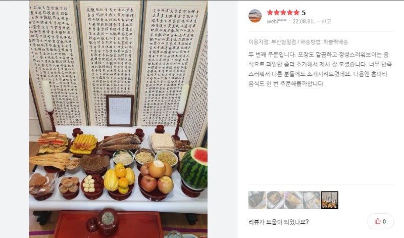 포장도 아주 깔끔하고 제사 음식은 깔끔함이 관건인데 손수단은 그런 걱정을 전혀 할 필요가 없다. 울산제물은 손수담에서 주문하세요^^ 전화: 070-8834-0092 홈페이지: www.sonsudam.com