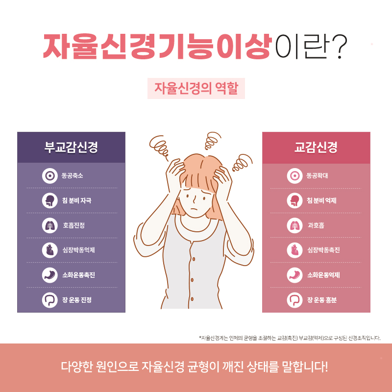 어지럼증은 주변 사물이 가만히 있어도 움직이는 것처럼 느껴지는 증상입니다. 이것은 스트레스로 인한 자율 신경 기능 장애로 인해 발생할 수 있습니다. 현기증은 네 가지 유형으로 나눌 수 있습니다. 1) 귀의 문제 2) 뇌의 문제 3) 내적 문제 4) 심리적인 문제를 원인으로 볼 수 있는데, 귀, 뇌, 신체적 문제가 없는데 설명할 수 없는 어지러움증이 발생한다면 자율신경계통으로 이어지는 심리적 압박감 때문이다. 신경 기능 장애로 인해. 자율신경계는 교감신경, 신체활동을 촉진하는 감정조절신경, 부교감신경으로 나눌 수 있다. 자율 신경 기능 장애는 두 신경의 균형이 맞지 않을 때 발생합니다. 자율신경클리닉에서는 “심장”의 자율신경 기능장애로 인한 신체적 증상의 원인을 찾고 있습니다. 과도한 열은 공황 발작과 같은 현기증과 질병을 유발할 수 있으며 부교감 신경은 심장의 에너지 전달 능력을 감소시켜 불합리한 통증을 유발합니다.