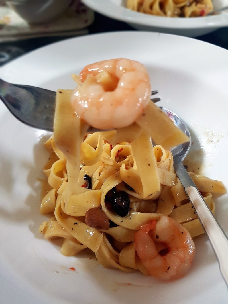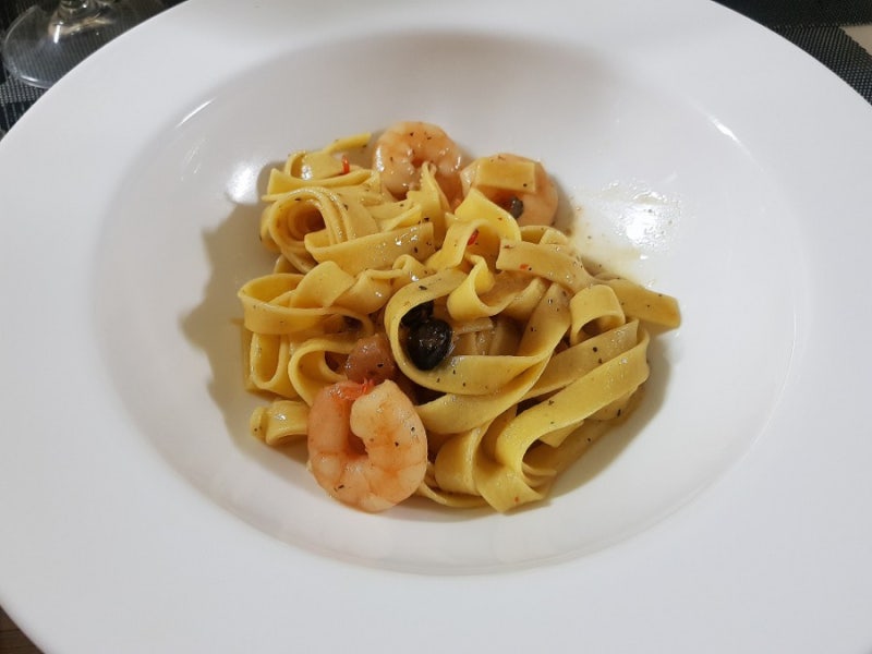 파스타 면이 특이하죠? 이 파스타는 제가 이탈리아를 여행했을 때 카프리 섬에서 샀습니다.현지 관광지에서 보자마자 골라낸 컬러 파스타입니다. (천연 성분으로 착색된 것으로 추정됩니다.)..k)k)