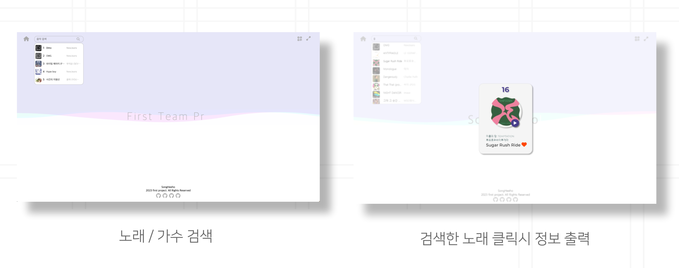 2. 메인 페이지 -> 검색 기능 -> 크롤링된 멜론 차트를 데이터에 삽입하는 기능 및 검색 데이터 -> 검색 데이터 클릭 시 모달창으로 구현