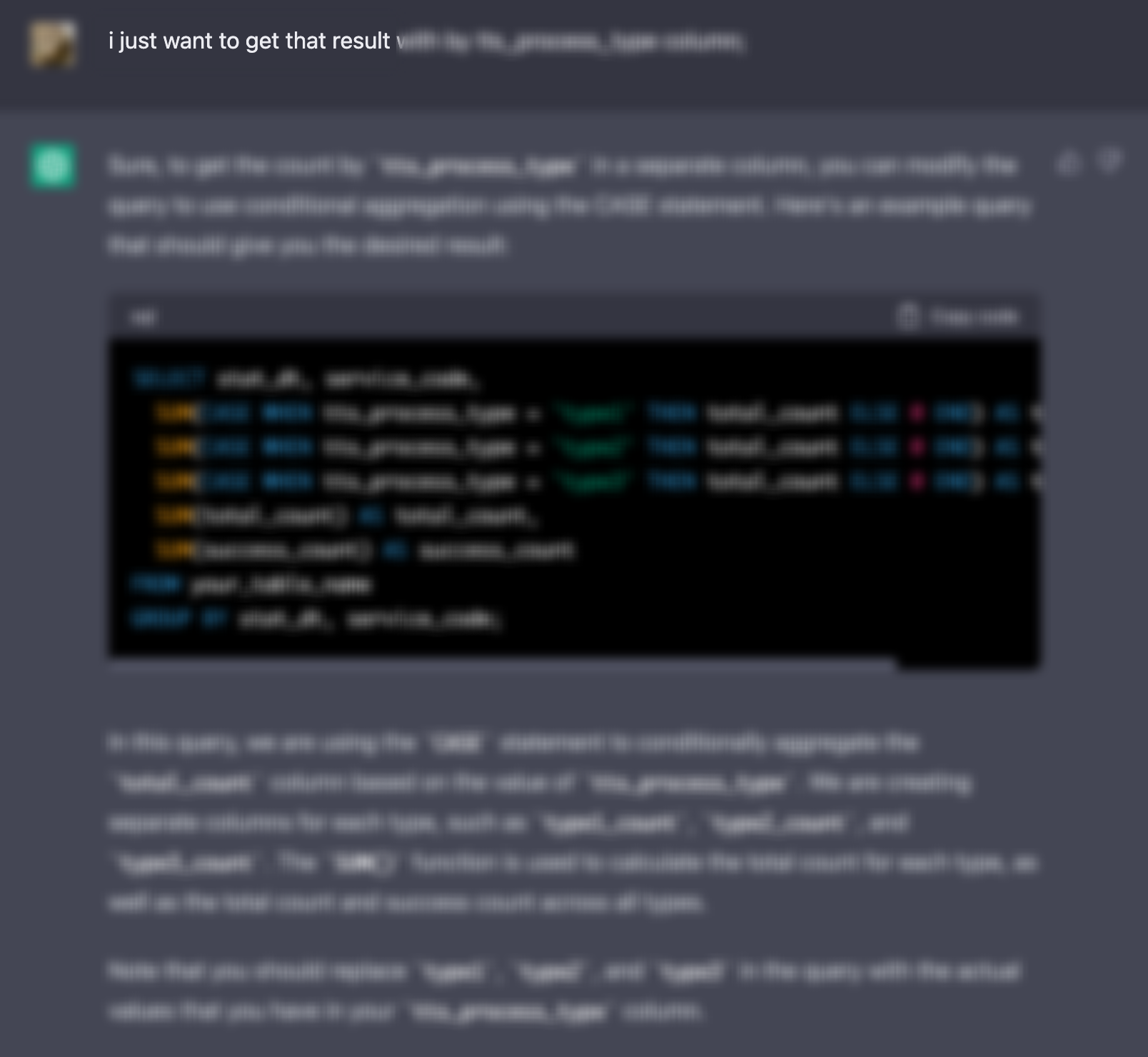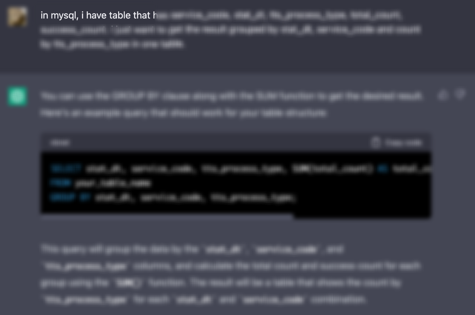 통계 쿼리라 복잡하고 오래된 레거시라 느린 성능에도 불구하고 아무도 바꿀 수 없었지만 Chat GPT를 요청하여 아주 쉽게 해결할 수 있었습니다.